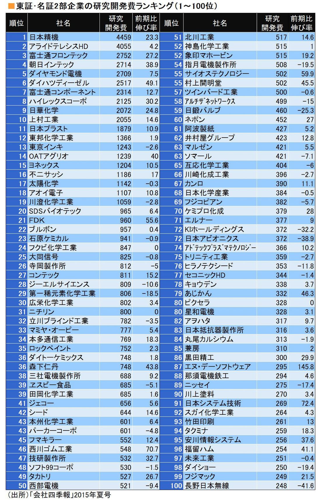『会社四季報』夏号のデータを基に東証2部上場企業と名証2部上場企業の中から、研究開発費の多い上位200社をランキングとしてまとめた。