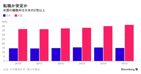 より良い賃金を求めて職を転々とする米国人に比べ、日本人は転職に消極的だ。賃金上昇から消費拡大への好循環を狙う安倍晋三政権にとって、日本の労働市場における雇用の流動性の欠如は頭痛の種。賃金アップより安定志向が強い慣習もデフレ脱却の足かせの1つになっている。