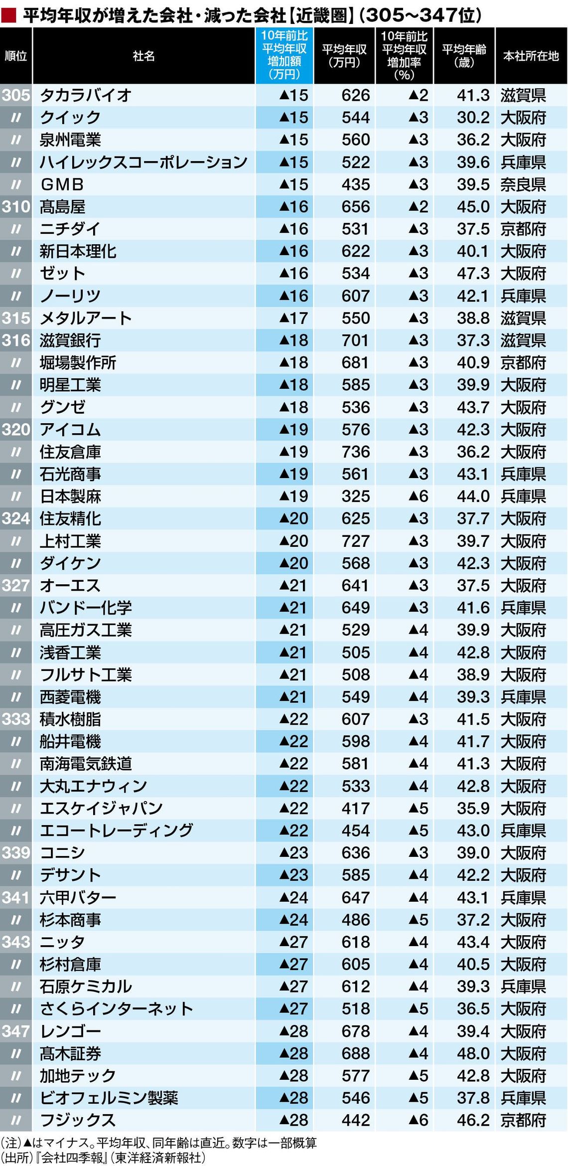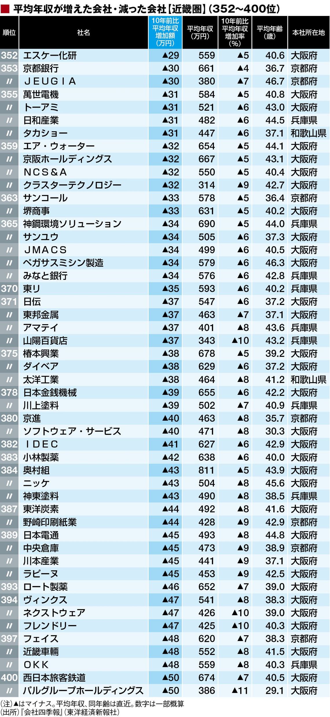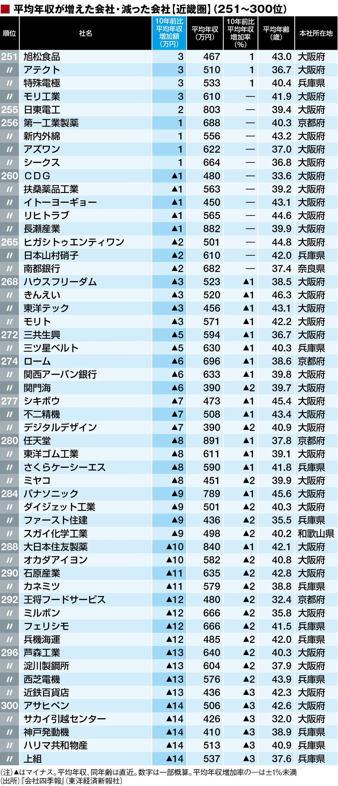総合平均年収増減「近畿地方469社」ランキング 1位は380万円増、ワーストは190万円減