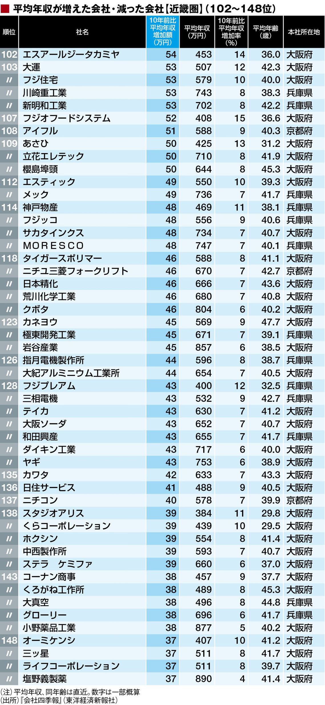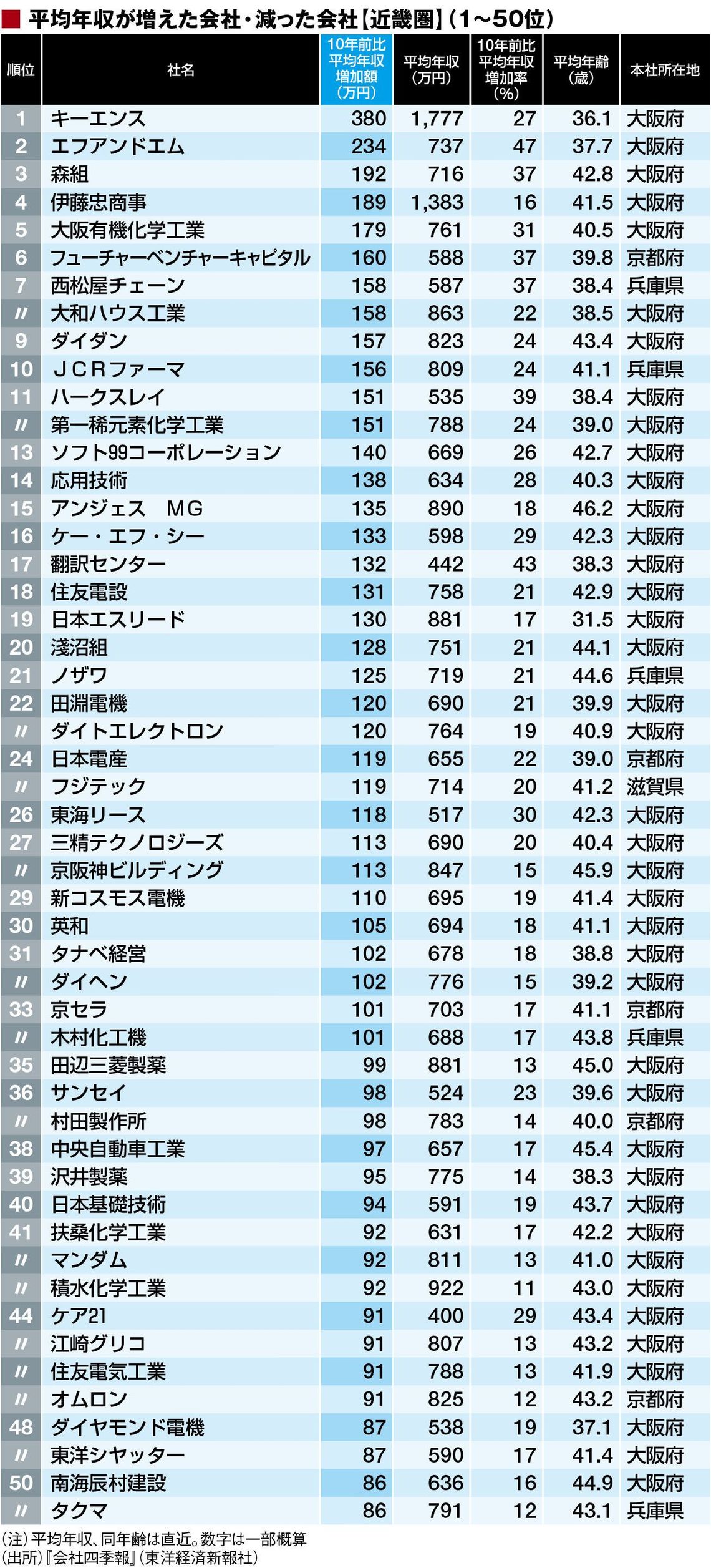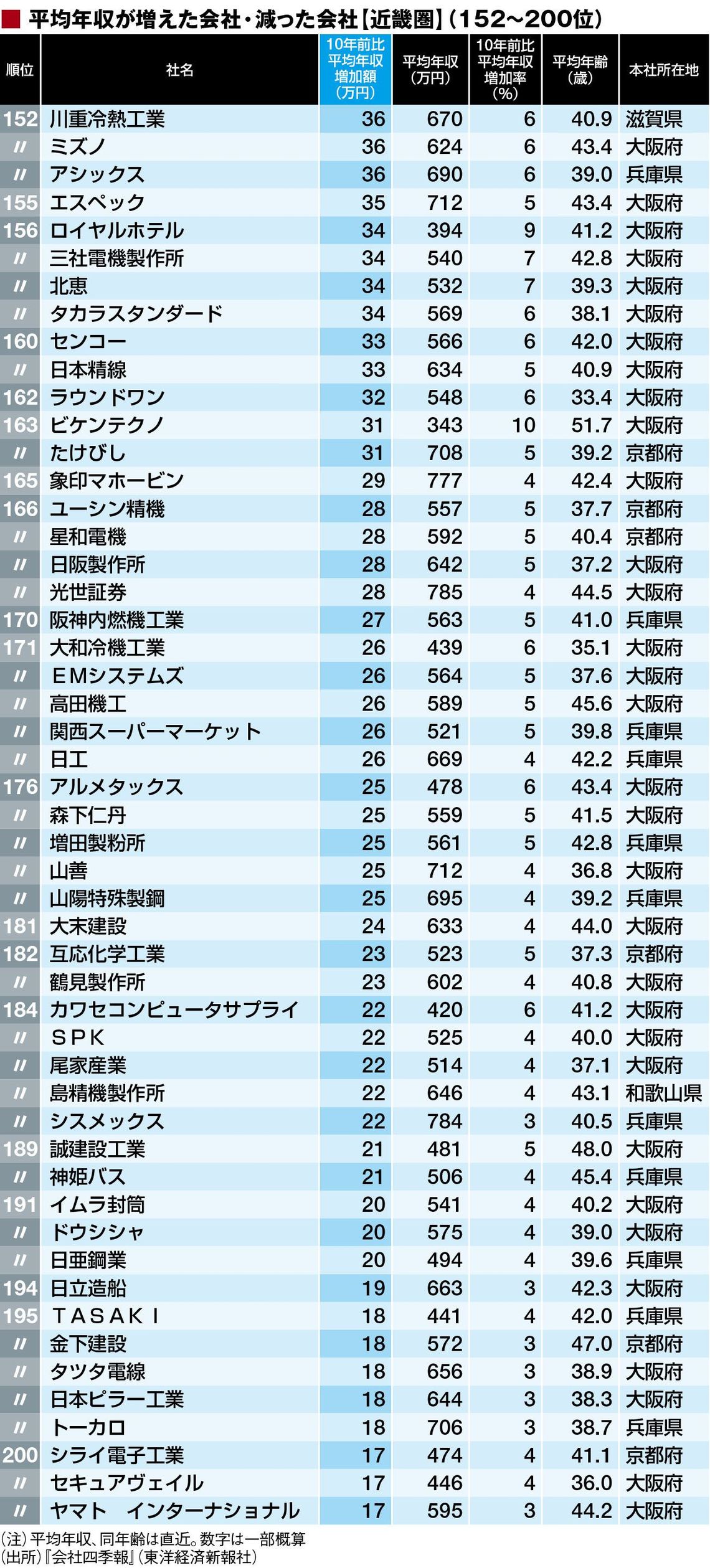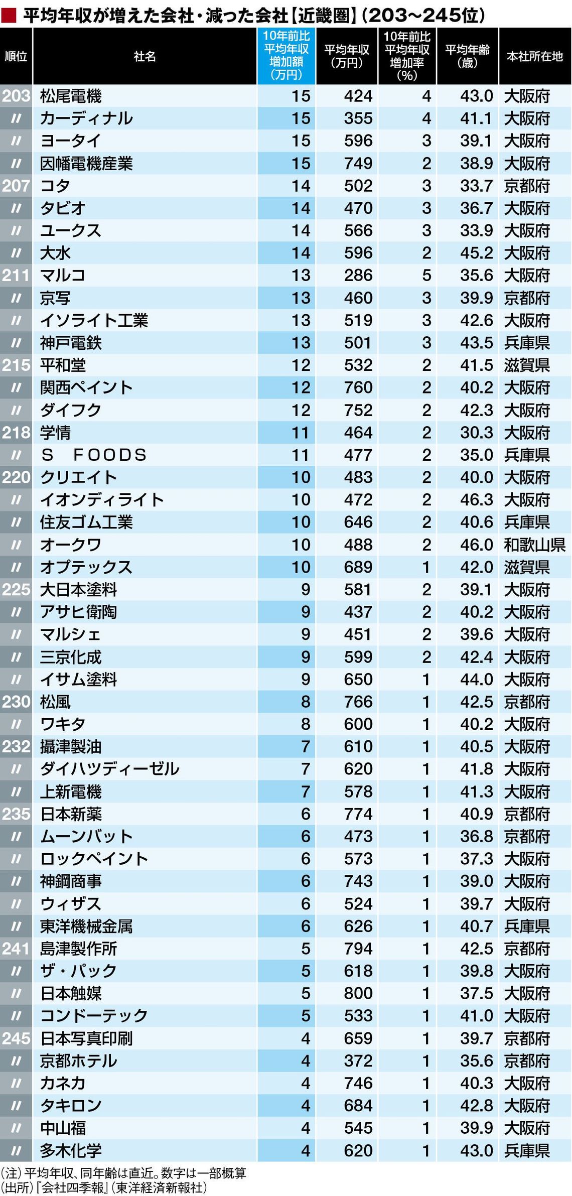 総合平均年収増減「近畿地方469社」ランキング 1位は380万円増、ワーストは190万円減