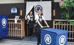 京都・祇園では、飛脚マークをあしらった制服を着た佐川女子が活躍している