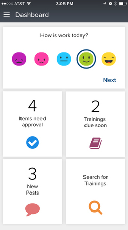コーナーストーンでは、社員の「今日の仕事の調子」をスマホから登録できるサービスを提供している。こうしたアンケートでエンゲージメントの変化を計測可能だという人材に関するもう1つの課題として、いま米国では「エンゲージメント」に注目が集まっています。これは社員が企業にどれだけ愛着をもっているかということですが、米国企業の調査では、わずか13%の社員からしかエンゲージメントが得られていないという結果も発表されています。経営者は、社員がどのような環境で働いていようと、パフォーマンスのマネジメント、そしてエンゲージメントのマネジメントをしっかりやっていく必要が出てきました。そうでなければ、報われないと感じた優秀な社員は会社を去ってしまうからです。