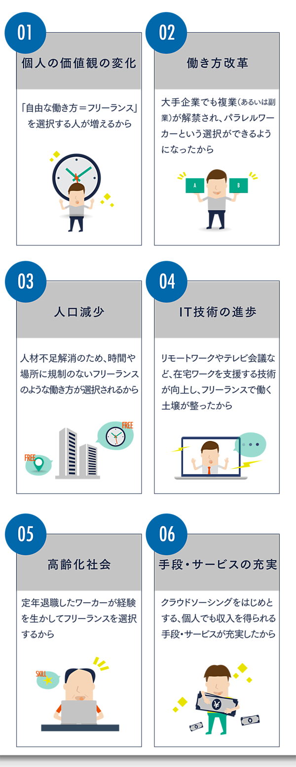 日本が国として「働き方改革」に取り組む今、「フリーランス」という働き方に注目が集まっている。事実、その数は年々増加傾向にあり、企業側も「フリーランス」を活用する方向での舵取りを迫られている状況だ。