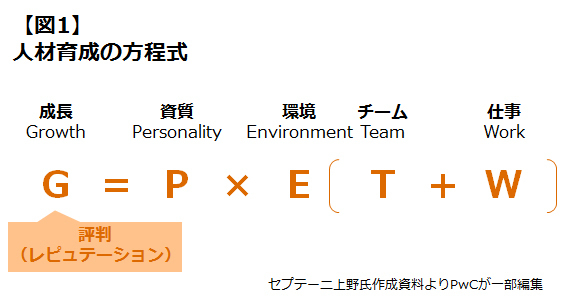 個人の成長はレピュテーション(360度評価結果)で評価しており(図1)、レピュテーションを高めたい場合、問題は資質か環境にあり、資質であれば教育、環境であれば組織における人間関係か業務を最適化するという方針になります。この仕掛けは適材適所を科学的に実現する技術を持った協力会社(株式会社ヒューマンロジック研究所)が持つFFS理論と当社のデータベースを掛け合わせてこのアルゴリズムを作り、この3年あまりチューニングしてきました。