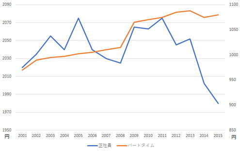 図2 正社員とパートタイム社員(右軸)の実質賃金(時給)これを「非正規はカワイソウ」とみて「正社員にしろ」と会社に求めるのが厚労省の方針だ。安倍政権の「働き方改革」もそういう温情主義の延長上にあるが、それは労働者を幸福にするのだろうか。