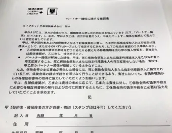 公的な証明書がなくても自社基準で対応する企業も増えつつある。先駆け的な取り組みとなったのがライフネット生命保険だ。15年11月、同性パートナーの生命保険の受取人指定を始めた。条件は同社指定の関係確認書の提出でよい。