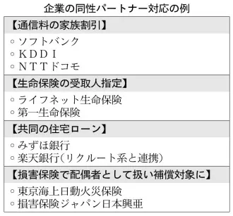法的拘束力はなくても公的な手続きの裏付けになるため、特に渋谷区の証明書は企業の商品・サービス面の対応に変化をもたらした。証明書を条件に通信料金の家族割引や保険受取人指定の対応をする動きが相次いだ。