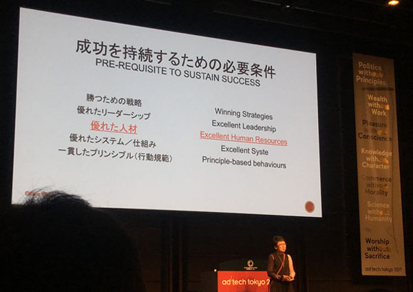 東京国際フォーラムの最も大きな会場の最前列に、現P&Gや同社出身の希代のマーケターたちがずらりと並んで、この講演はスタートした。日本人で初の米P&Gヴァイス・プレジデントに就任した和田浩子氏が、アドテック関西に続いてアドテック東京2017に登壇。今回の講演「サステイナブルなブランドを育み、ブランドを育む人を育てるために」では、P&Gで幾多の人材を育ててきた和田氏から、ブランドマネジメントと人材育成の確固たる仕組みと、そこで大切にしていることが語られた。