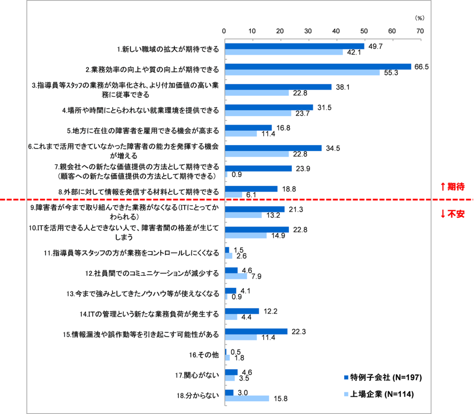 同社では、ITの導入によって障がい者雇用の領域拡大や、業務効率化に期待できるととも、マネジメント円滑化などさまざまな可能性が広がると分析している。