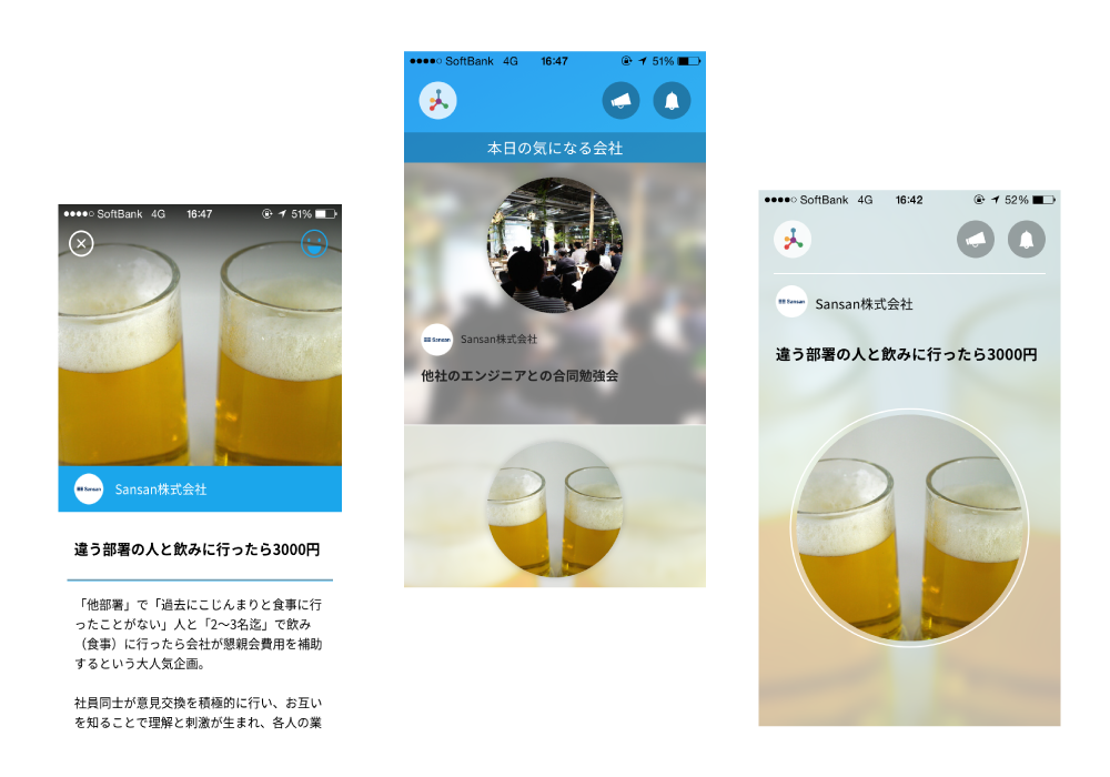 以前より、一般的な転職サイトはPCがないと操作しにくいという点に課題があると感じていました。また、β版リリース後の利用調査でもスマホからの利用割合が多かったこともあり、メインのターゲット層(20代)が通勤や就寝前のスキマ時間に簡単に利用できるような、スマホアプリを開発したいと思っていました。