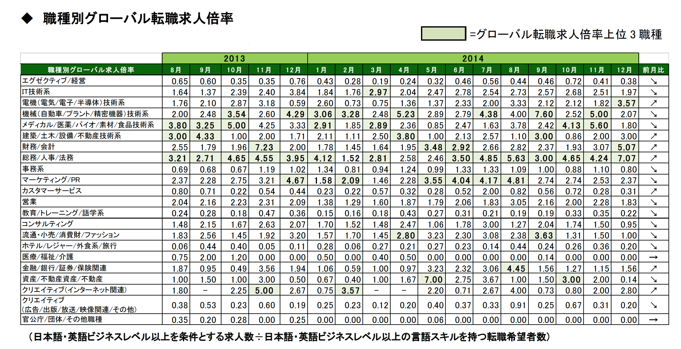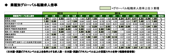 総合2014年12月 グローバル転職求人倍率1.13倍