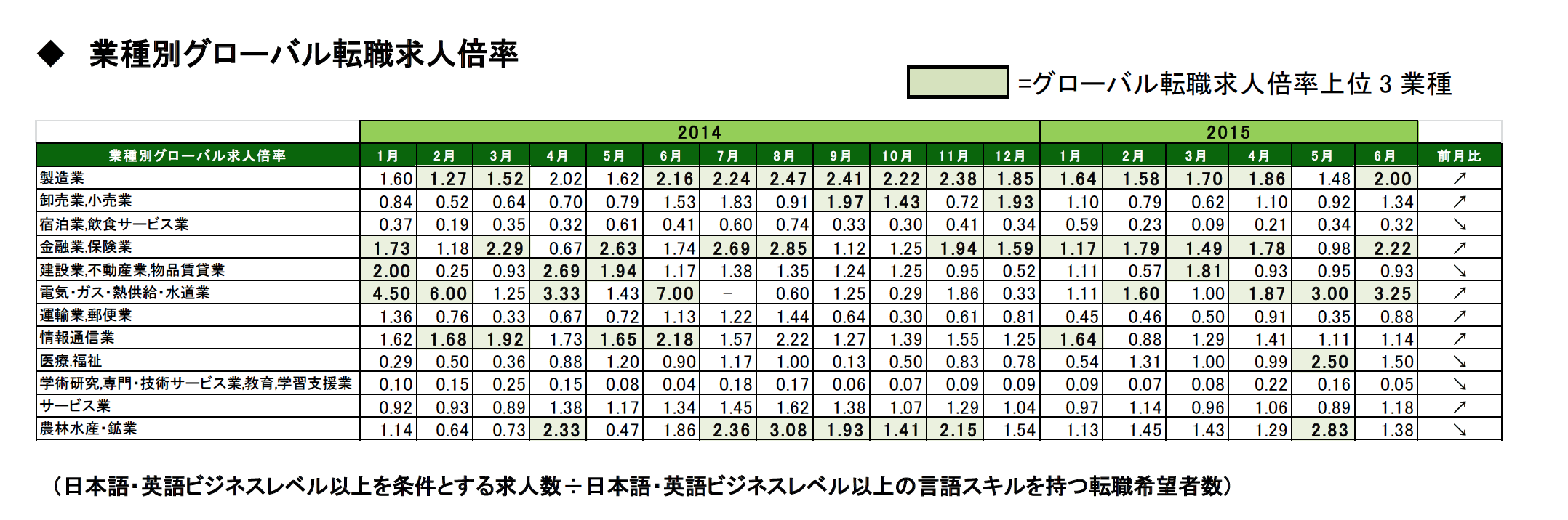 ヒューマンホールディングス株式会社の事業子会社で、バイリンガルのための転職・求人情報サイト Daijob.comを展開するダイジョブ・グローバルリクルーティング株式会社(本社:東京都港区、代表取締役:篠原 裕二)は、2015 年 6 月末時点のグローバル転職求人倍率※をまとめました。