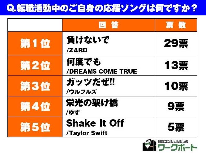 中途【転職希望者のホンネ調査】「負けないで」、「何度でも」「ガッツだぜ!!」…etc転職活動中に聴きたい応援ソングは“元気”や“勇気”がキーワード!
