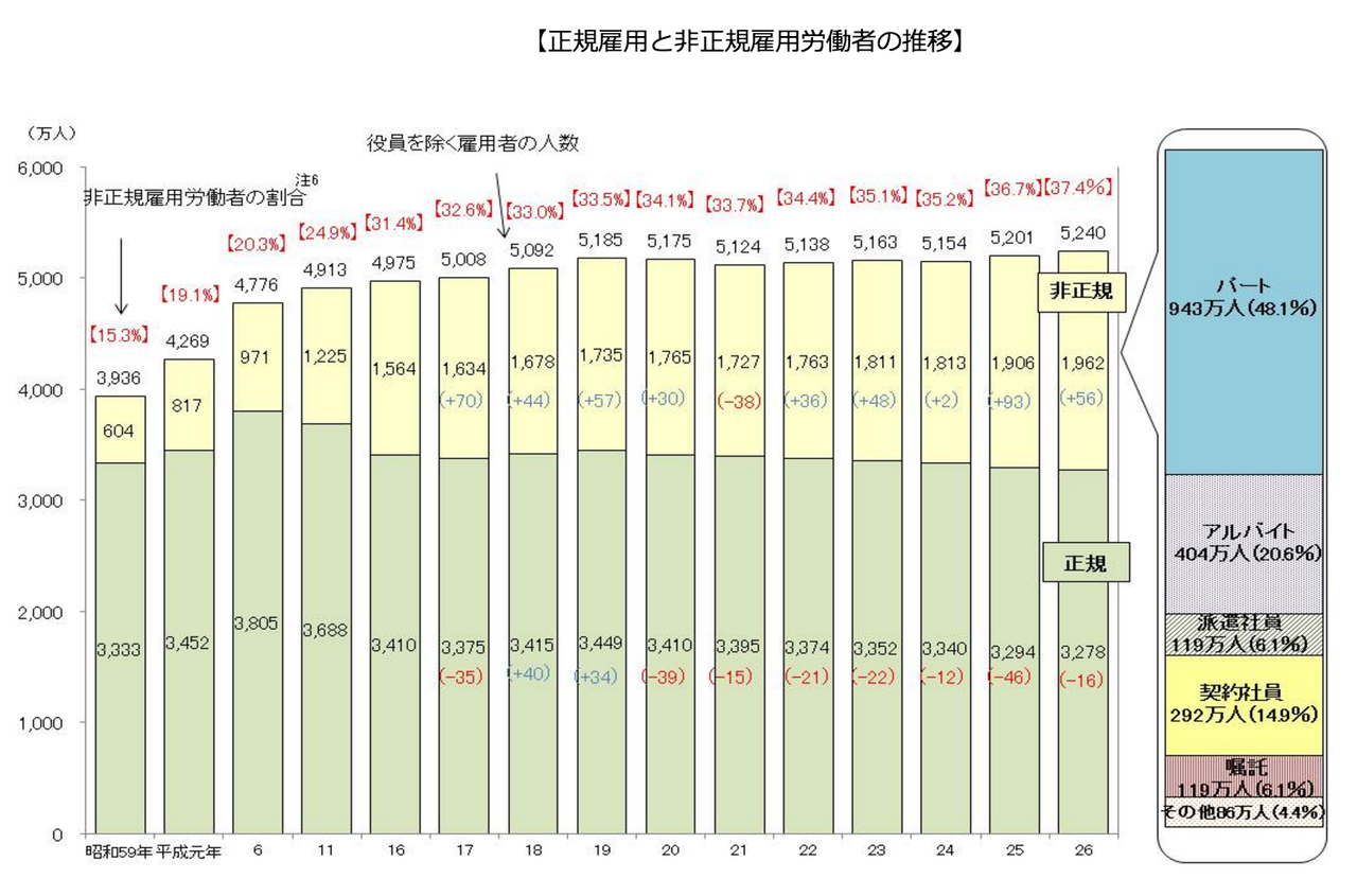 (出所:厚生労働省「「非正規雇用」の現状と課題」)
