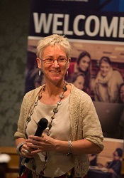 GAPのシニアディレクター:Vital VoicesのZoe Dean-Smith氏。 【写真提供:バンク・オブ・アメリカ】このプログラムのシニアディレクターであるヴァイタル・ヴォイスのゾーイ・ディーン・スミス氏は、「マンツーマンのメンタリングシステムによる、実践型プログラムが自分たちの強みである」「メンターとメンティのマッチングは、専門性の具体的一致ではなく、その事業の発展に必要な能力を最も伸ばせる組み合わせを考えた。メンティたちを真にエンパワーメント、エンカレッジできるプログラムをめざしている」と語ってくれた。