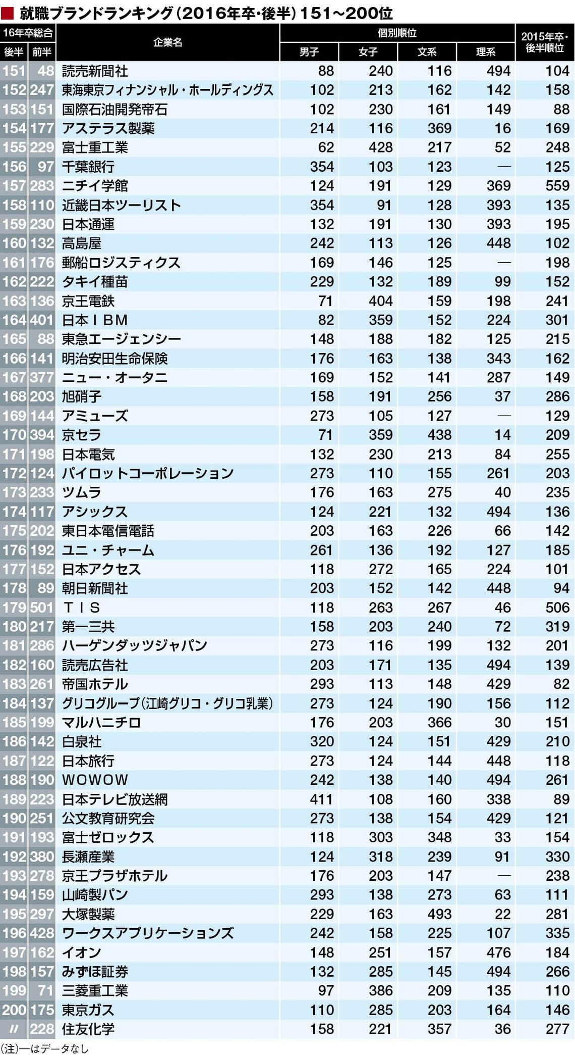 新卒最新版!「就職人気ランキング」ベスト300社 2016年入社予定の学生が選んだ決定版