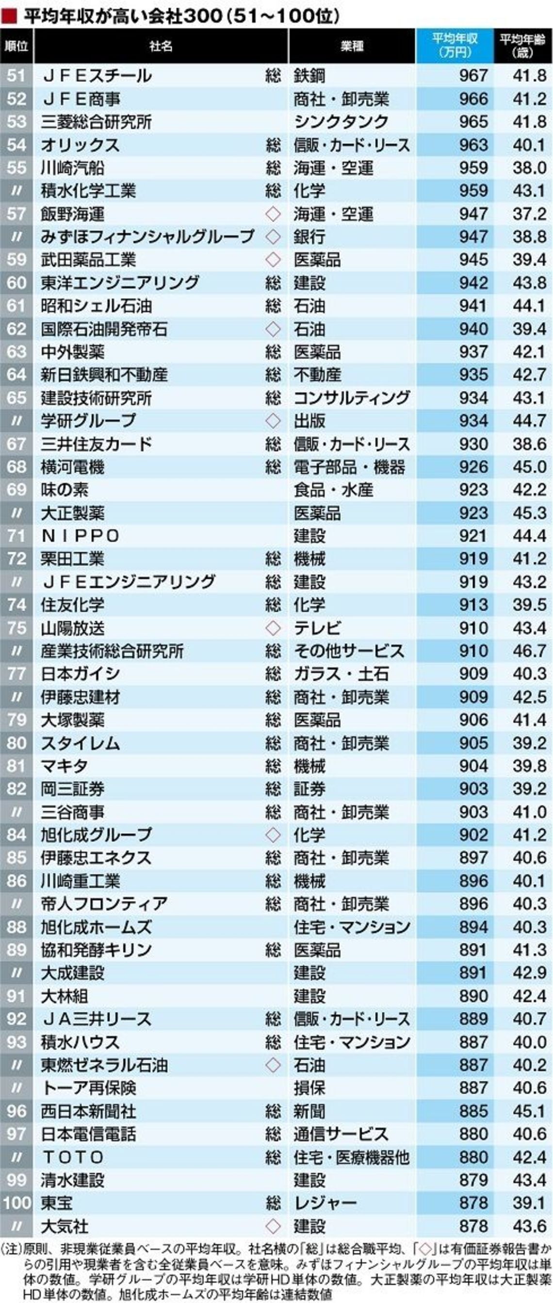 総合「平均年収が高い」トップ300社ランキング 今回もマスコミや商社が上位を独占