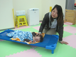 そう言うと彼女は、わが子を預ける「キッズルーム」へと案内してくれた。見ると、彼女の長男はスヤスヤと寝息を立てている。そっと傍に寄り添い、頭を撫でるその手は柔らかく、頼もしかった。