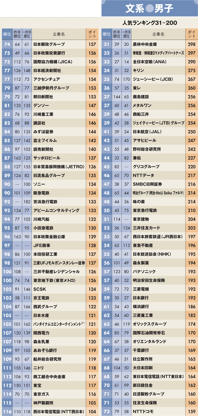 新卒就職人気企業ランキング2016【文系男子】ベスト200 商社・金融強し!他業種で1位は飲料系のあの企業