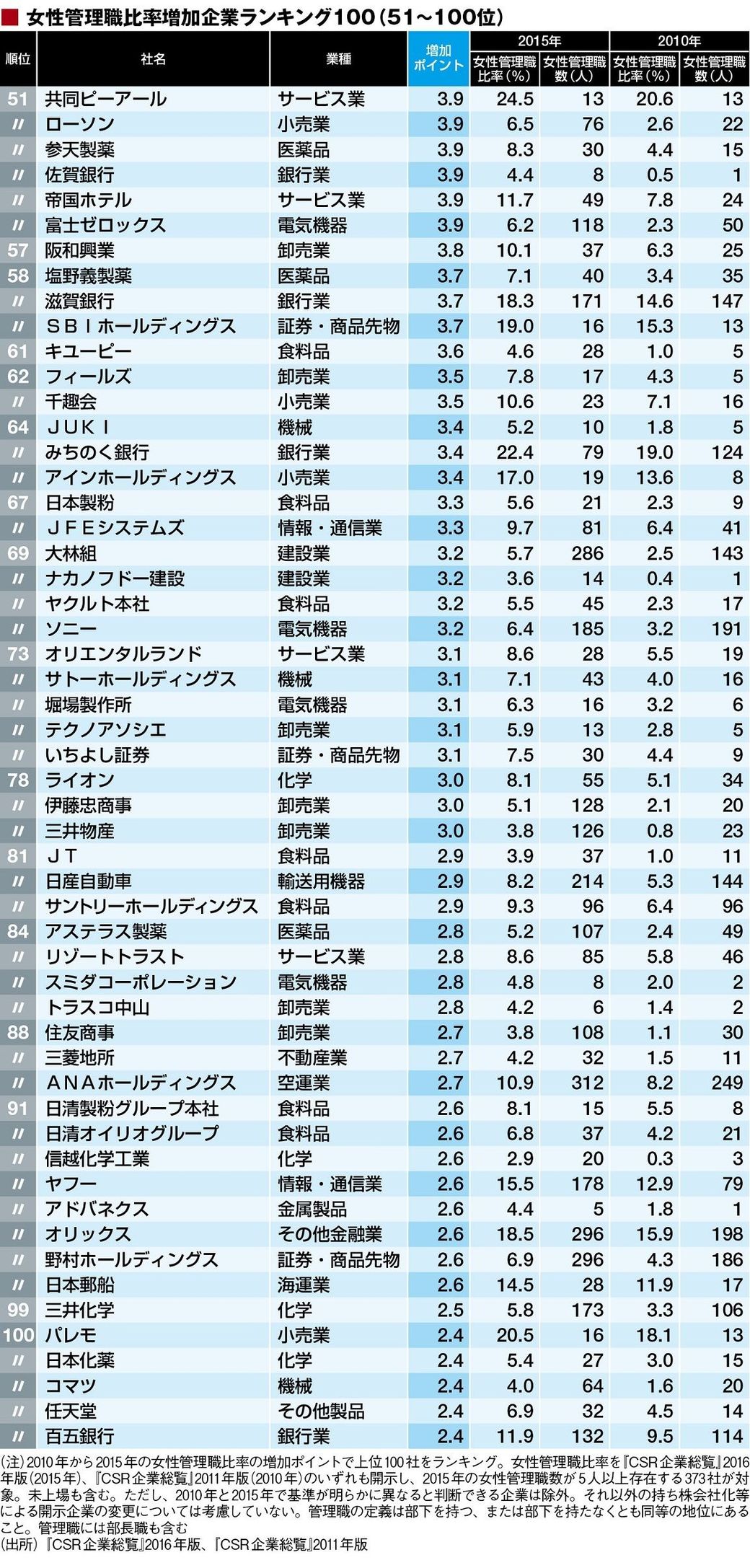 女性雇用「女性管理職比率が増加した企業」トップ100 「CSR企業総覧」で読み解く有望企業