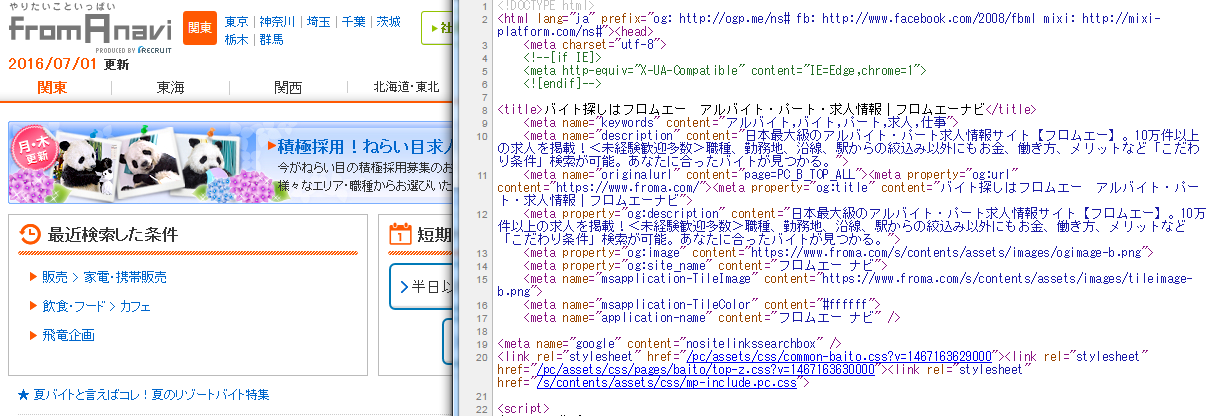 給与的なお話はフロムエーナビとバイトルはできてるわけですね。マイナビバイトはTitleと同じ。OGP設定の方に関してはキャッチコピー挿入がようやく出てきますが、SNSでシェアってどんくらいの人がしてますかねぇ・・・