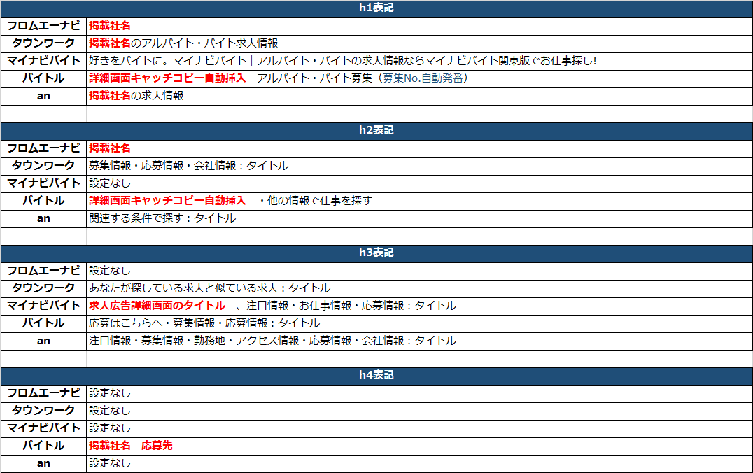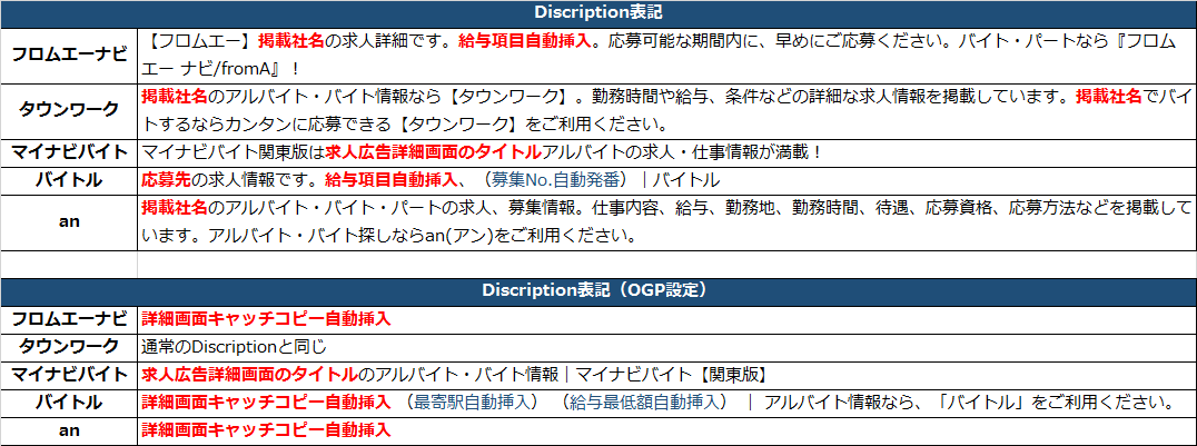 ふむ・・・マイナビバイト以外は社名しか入れられませんね。自分たちだけで出来るSEO的に積極的な工夫はマイナビバイトじゃないと難しそうですね。