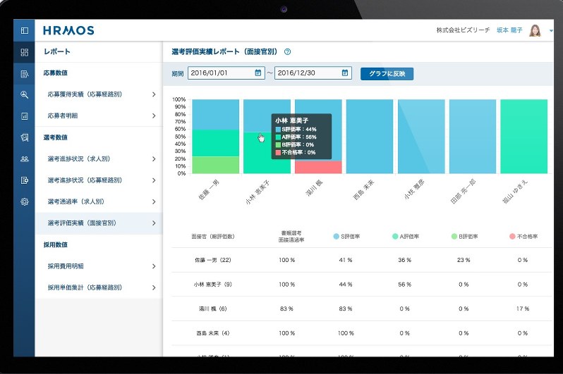 人材サービスのビズリーチ(東京都渋谷区)は6月、人材の採用、育成、評価をAIがサポートするクラウドサービス「HRMOS」(ハーモス)を発表しました。営業力や研究開発能力、国際性など、どのような人材がほしいかは会社ごとに違います。ハーモスはその会社の社員評価をビッグデータとして蓄積。それをAIが分析します。出世するなど高い評価を受けている社員の特性が分かれば、一般的な評価基準のみではない各企業の求めている能力が導き出されるからです。採用時には、必要な人材かを見極める選考基準を面接官に示します。